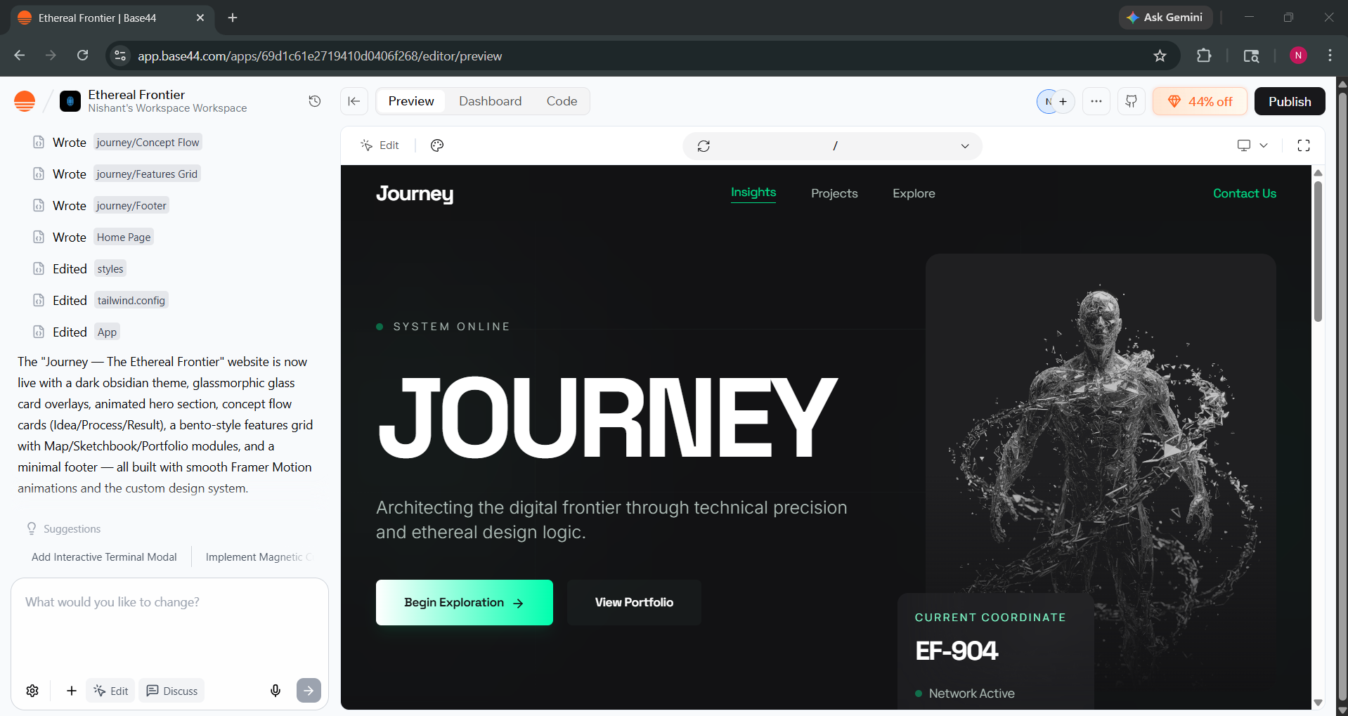 Base44 surprises me every time. Although it didn't generate the exact UI, the output was better than what I expected. You can further edit the website or publish it directly via Base44.