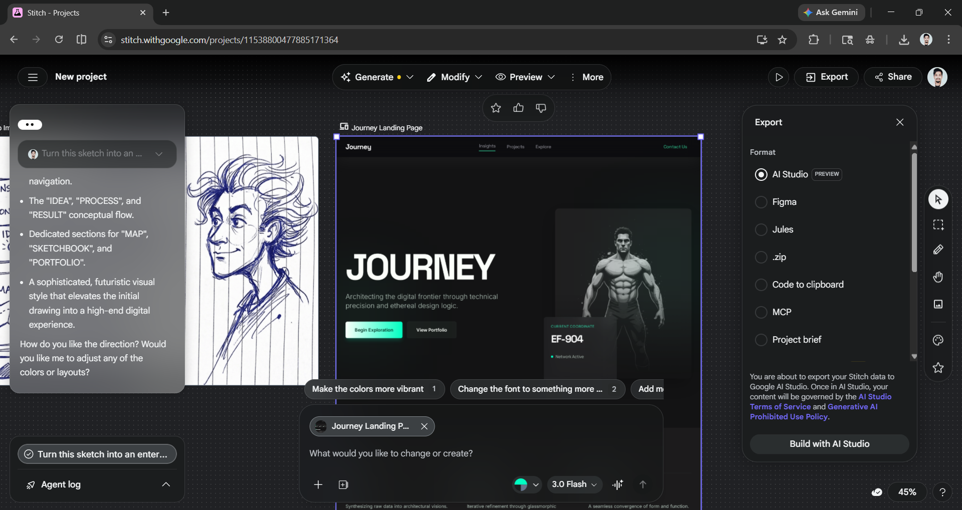 Prompt I used: Turn this sketch into an enterprise-grade, professional, minimal futuristic website.
