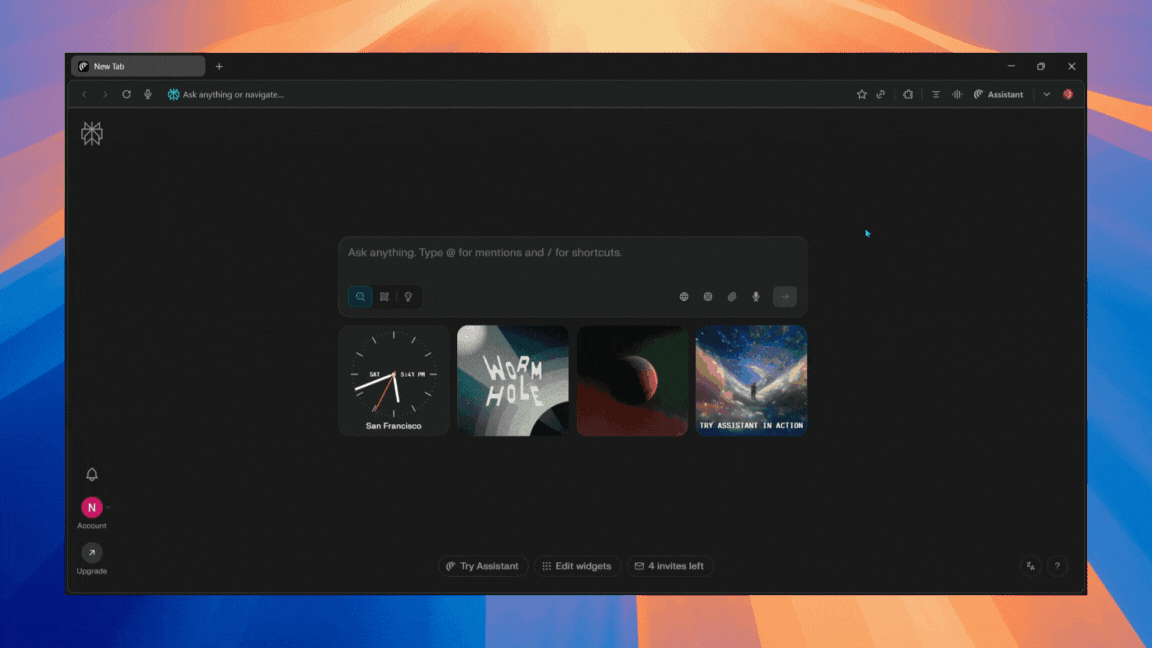 - Edit Widget: This is my favourite feature as it lets you decide what main features you want easy access to. My personal favorites are the clock, Wormhole, Zen mode, and Comet assistant in action.